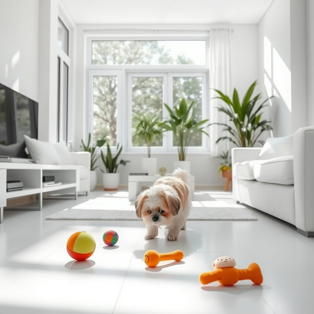 • 안전한 던져 가져오기: 복도나 넓은 거실에서 반려견이 좋아하는 부드러운 공이나 장난감을 짧은 거리로 던져주세요. 이때 미끄럼 방지 매트 등을 사용하여 반려견의 관절을 보호하고, 부딪힐 만한 가구는 미리 치워 안전한 공간을 확보하는 것이 중요합니다.